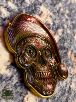 This 3-inch, 4mm-thick, high-detail 3D coin features a Christmas sugar skull on the front and a festive South Pole gangster scene on the back. Limited run — only 100 serialized coins.